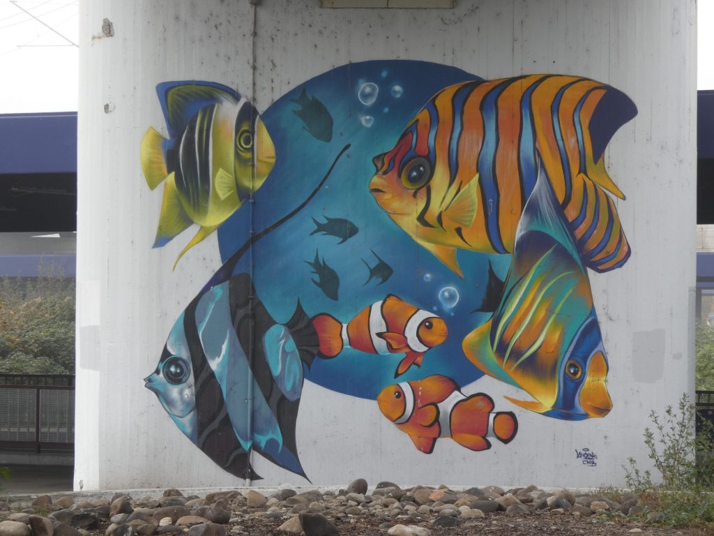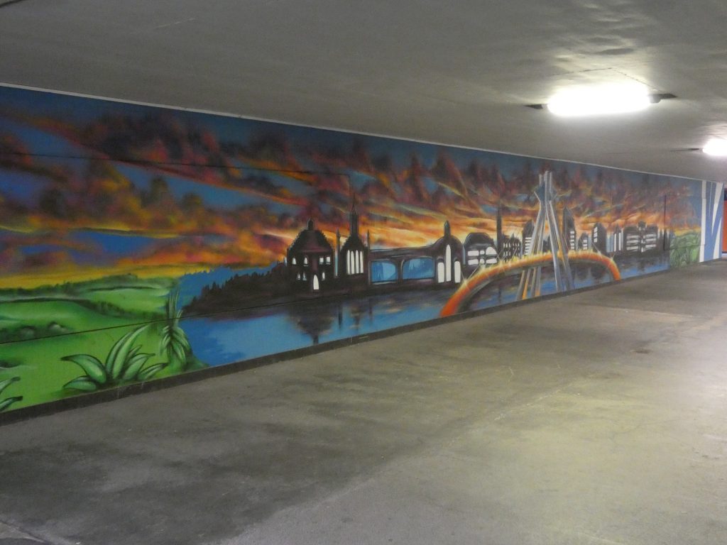 Der Ludwigshafener Hauptbahnhof ist hässlich. Punkt. Nichtsdestotrotz gab es vor einiger Zeit ein Projekt, in dem (hauptsächlich) die Unterführungen mit Kunstwerken verschönert wurden. Für einen Bekannten habe ich vor ein paar Wochen ein paar Fotos davon gemacht (knapp 50 Stück zählt als „ein paar“, oder?), die ich hier einfach unsortiert und ungeprüft, nur etwas verkleinert, anhängen werde.