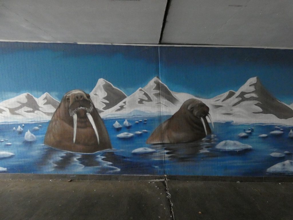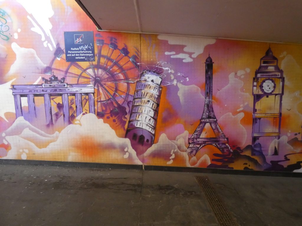 en: I’ll just dump some – well, around 50 – pictures of the murals at Ludwigshafen Main Station here. Just resized them, but did nothing else. No particular order, nothing. Enjoy.